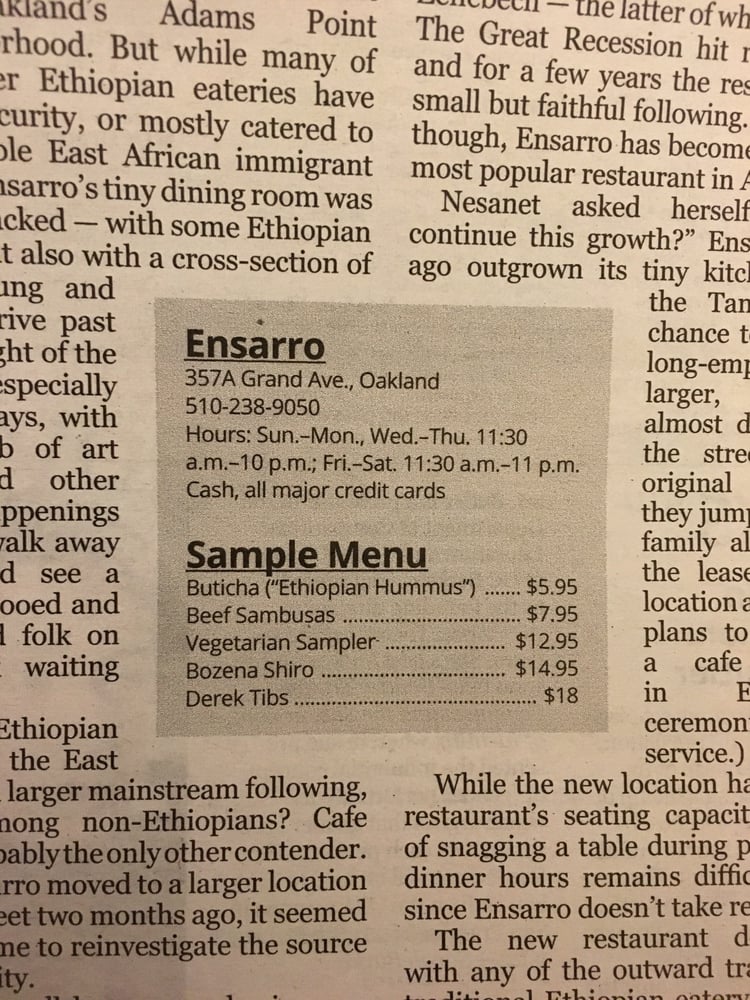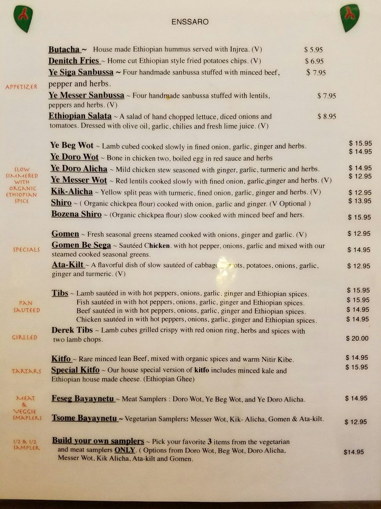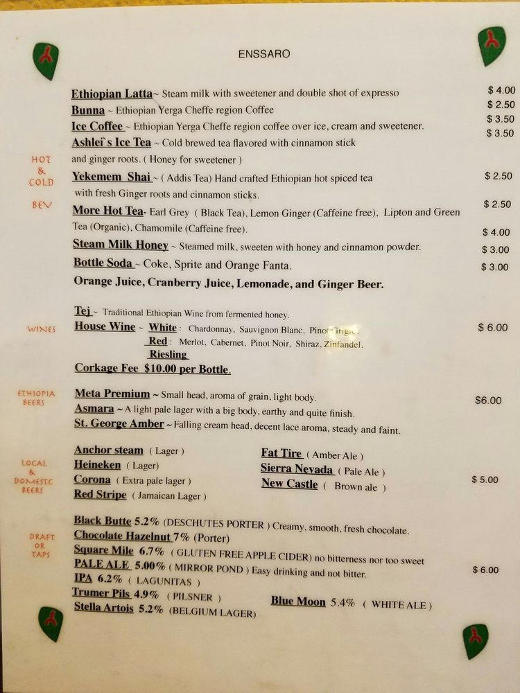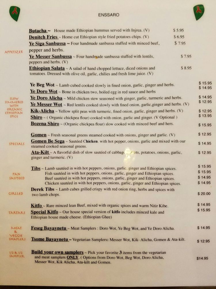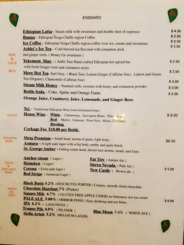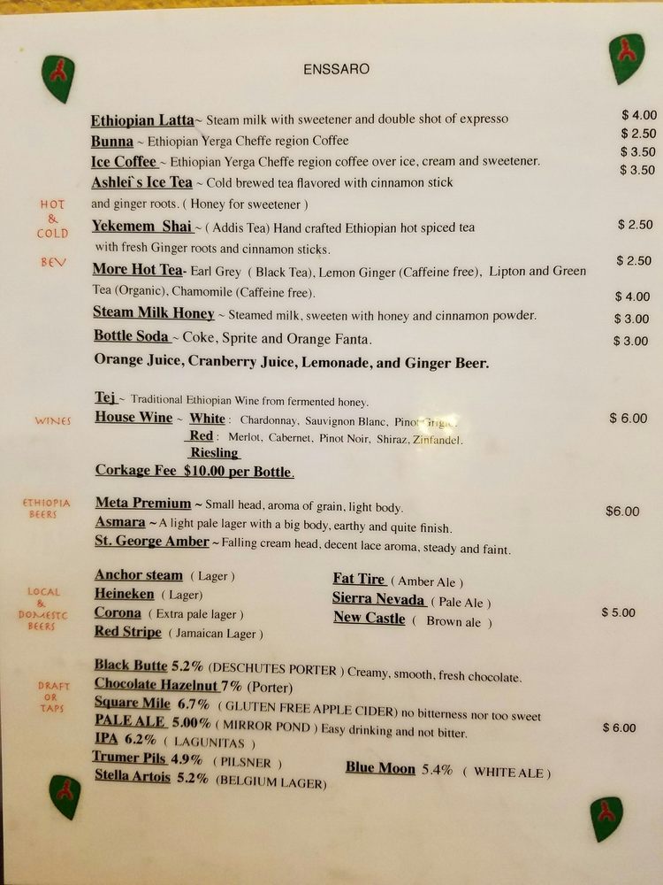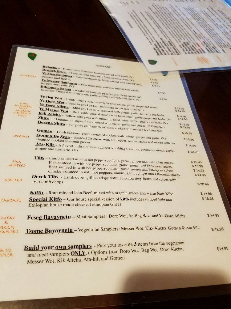 Enssaro Ethiopian Restaurant, located in Oakland, CA, offers a diverse menu filled with traditional Ethiopian dishes. Customers rave about the flavor-packed options, including red lentils, yellow peas, and veggie and meat samplers. The relaxed atmosphere, friendly service, and affordable prices make it a must-visit spot for food enthusiasts. Standout items like the guava margarita and the red lentils with injera bread are highly recommended. The restaurant is also known for its eco-friendly practices, offering compostable containers and plastic-free packaging options. Overall, Enssaro Ethiopian Restaurant provides a unique dining experience with a wide range of options suitable for vegetarians, pescatarians, and meat lovers alike.